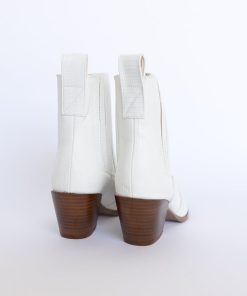 These faux leather boots are an easy throw on and go that will elevate any outfit. We love the shiny croc pattern finish of these booties and the stitching makes these next level. Pair with a skirt and sweater for the perfect fall outfit. Cream is an off white color while white is a true, bright white color.
