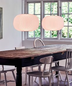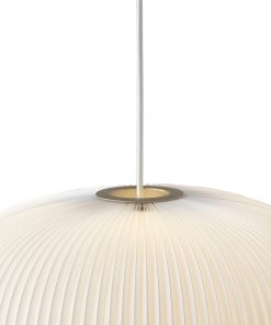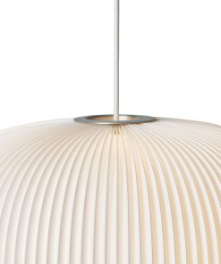 Pendant providing a diffused warm glow; to be hard wired into the ceiling. Production Process: The pleated lamp shade is still at the very heart of the 75-year-old design company. To this day the craftsmanship of the cross pleated lamp shade is unique and is a handicraft that is only mastered at Le Klint’s original Pleating Studio in Odense, Denmark. To become a skilled pleating technician at Le Klint takes approximately three years and most of the employees in the pleating studio have been with the company for more than 25 years. Due to the vast experience within this group, they are often consulted when new ideas are brought to the table. All parts are made from the best materials and often produced by local companies situated close to Le Klint. The parts are put together at the facility in Odense and shipped from here to all parts of the world.