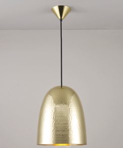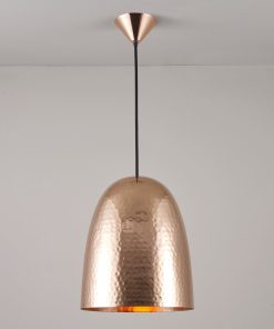 Each of the spun shades begin life as sheet metal disc and are formed through a process called spinning. The sheets are first clamped to a formed block (reflecting the shape we want to produce) which are rotated together at high speeds. A localized pressure is supplied by hand to this spinning workpiece, causing the disc to adopt the shape of the block. The formed shade is then finished by polishing, weathering or powder coating.Stanley Pendants are hand-spun at Original BTC’s Birmingham metalworks. Materials include brass, copper or nickel plated. Available in three different sizes and in a hammered or smooth, reflective finish. Group them together for a dramatic effect or mix metals for a laid-back, eclectic look.